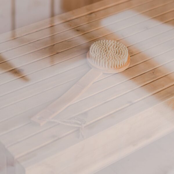 A perfect companion for your bathing ritual. This natural bristle brush is made from sustainable bamboo and has a long handle to reach the mid back.